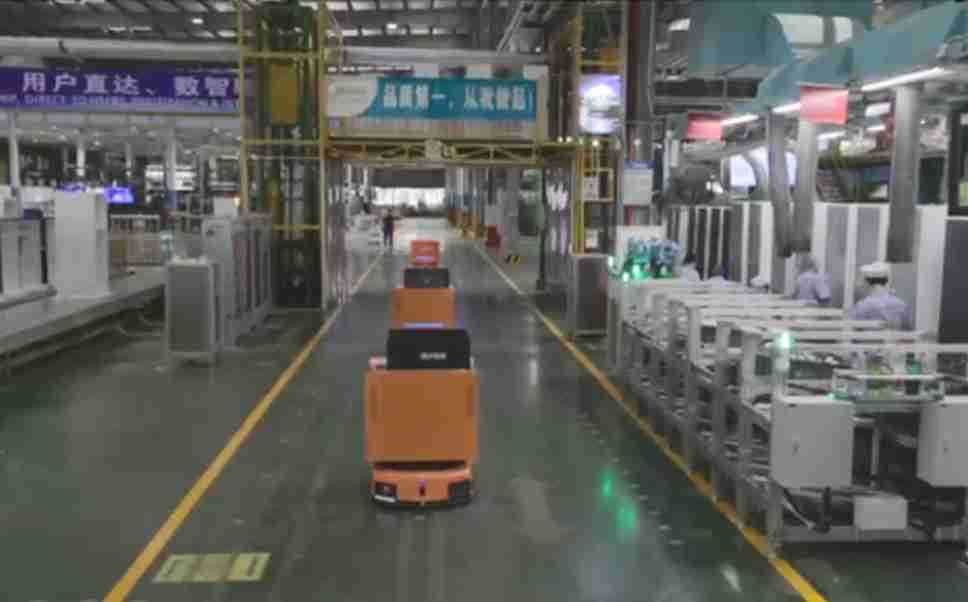 为车载冰箱物流配送打造的智能解决方案,,,包含产中物流通过潜伏举升AMR搬运至线边,,产后成品物流智能仓储,,,流程包含产中物流智能齐套入库,,,线边安灯叫料AMR智能配送至线边,,成品入库、、出库,,通过无人堆高车机器人,,智能仓储管理替代人工作业管理,,实现更高存储、、更高效率、、更具柔性化的解决方案。。